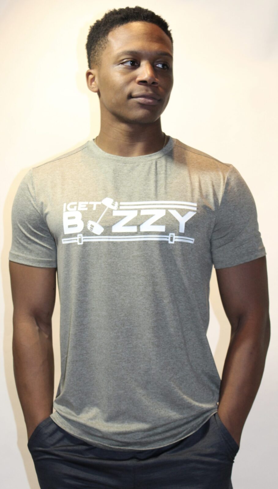 – I GET BIZZY logo to chest